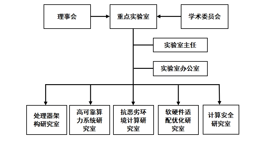 實驗室實行理事會領導下的實驗室主任負責制,成立學術委員會,設立實驗室辦公室。根據發展目標和重點任務,設置處理器架構、高可靠算力系統、抗惡劣環境計算、軟硬件適配優化、計算安全五個研究室。