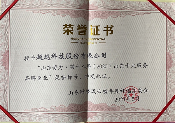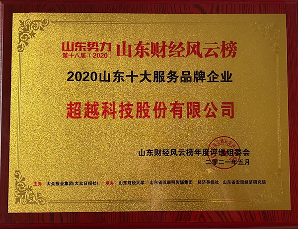 超越榮獲“2020山東十大服務(wù)品牌企業(yè)”