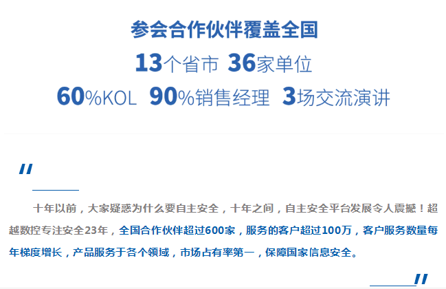 于治樓副總經理結合多年帶領團隊致力于自主安全領域產品研發的經歷,生動詳實地介紹了公司在技術、研發、產品、CPU路線等方面的整體能力。在研發方面,專業的自主安全團隊保障技術通關;在生產方面,細化生產工藝,產線靈活應對生產需求,快速產出,及時交付,全程產品工藝檢驗保障產品品質。23年來,超越數控參與了諸多重大項目,客戶對公司綜合實力高度認可,面對黨政市場需求,公司將不忘初心,以行業最優品質的產品服務客戶。