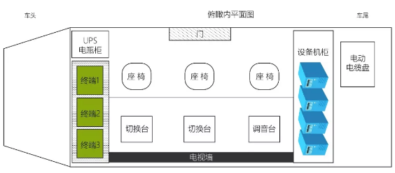 電視直播車一般由底盤、廂體以及攝像系統、監看系統、切換系統、音頻系統等其他系統組成;可以分為駕駛區、工作區及工作輔助艙,工作區一般又分為音頻區、導播區和技術區。通常我們看到的直播車空間狹小,車上設備眾多,人員工作區域安排復雜。在有限的空間內,合理分配設備、安排人員工作區域就顯得格外重要。